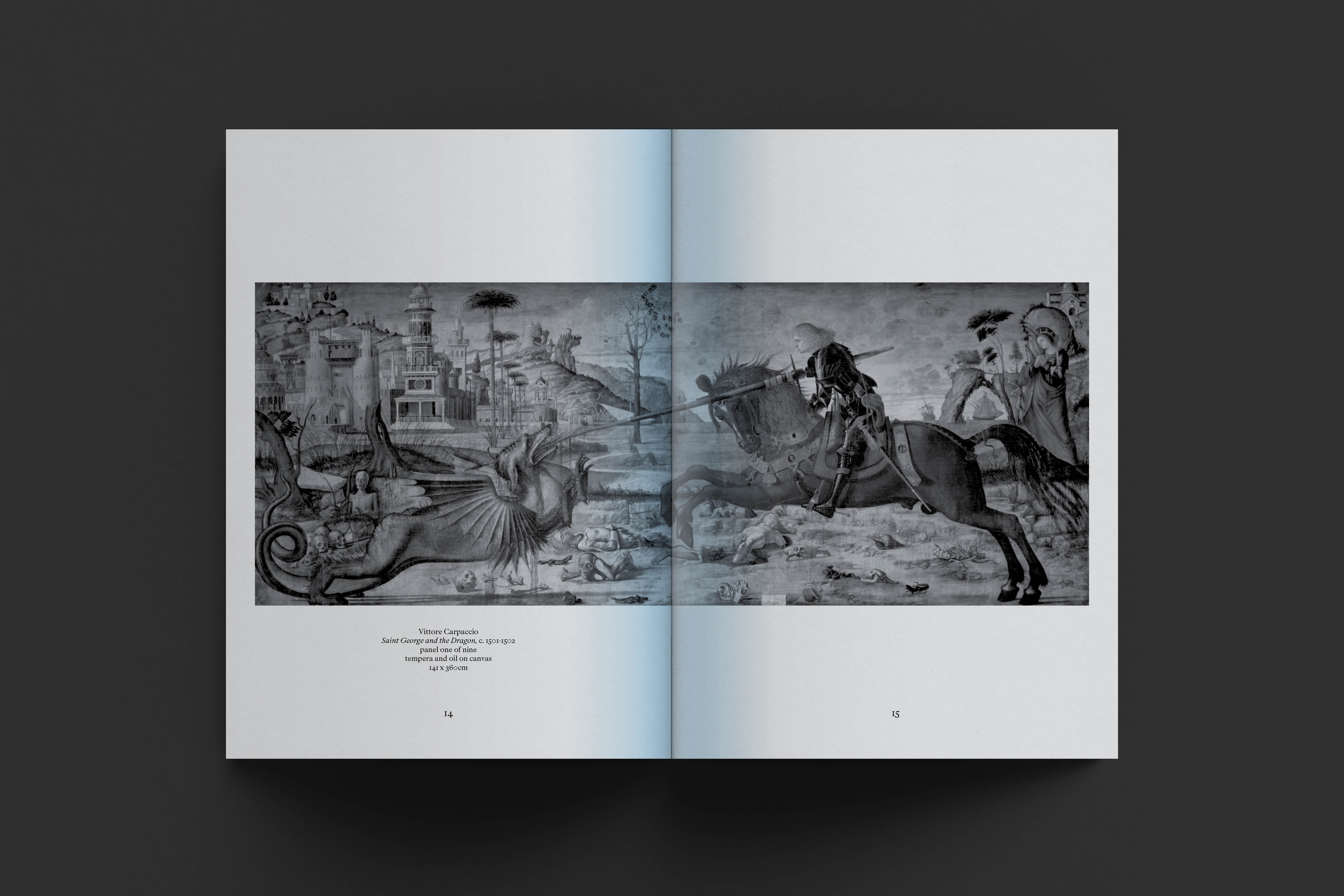 The book features diaristic texts by Piggott, reflecting on a cycle of paintings by Vittore Carpaccio in the Scoula Dalmata dei Santi Giorgio e Trifoni, Venezia.
